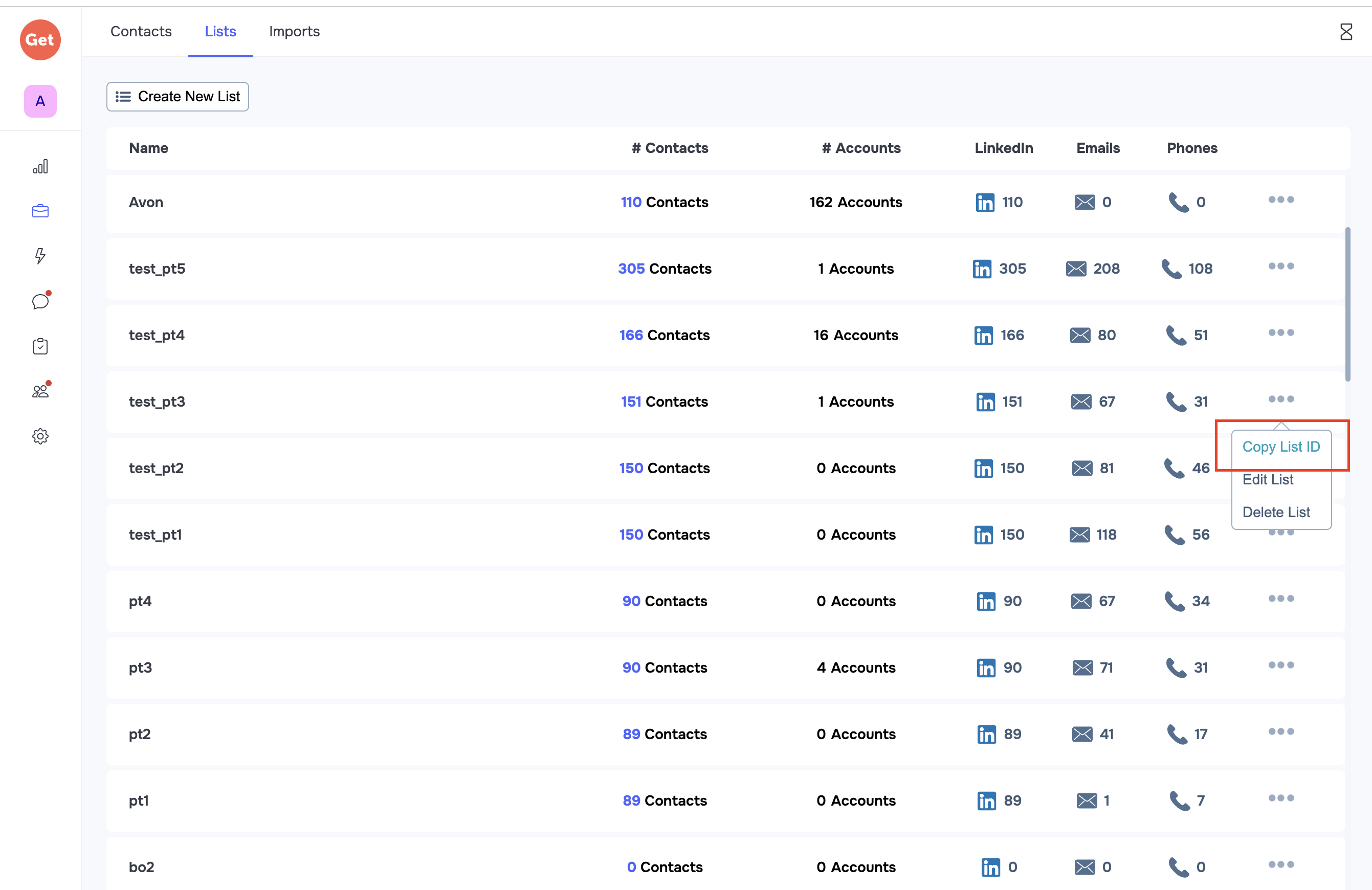 POSTrequest to the/leadsendpoint. - Each contact must be in some list. So go to Lists page, click on the 3 dots icon of any list and select the "Copy List ID" option